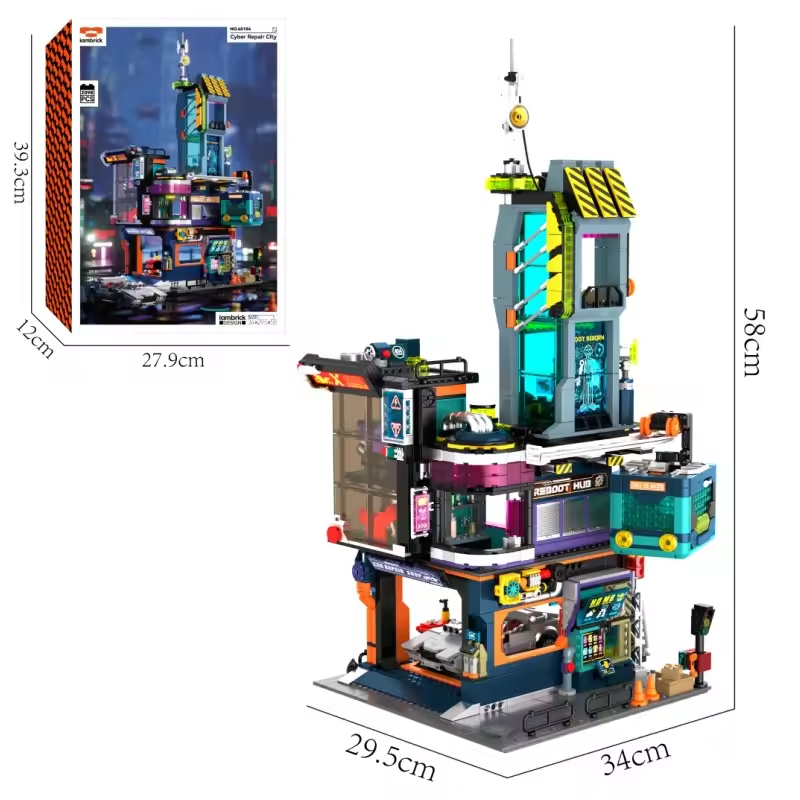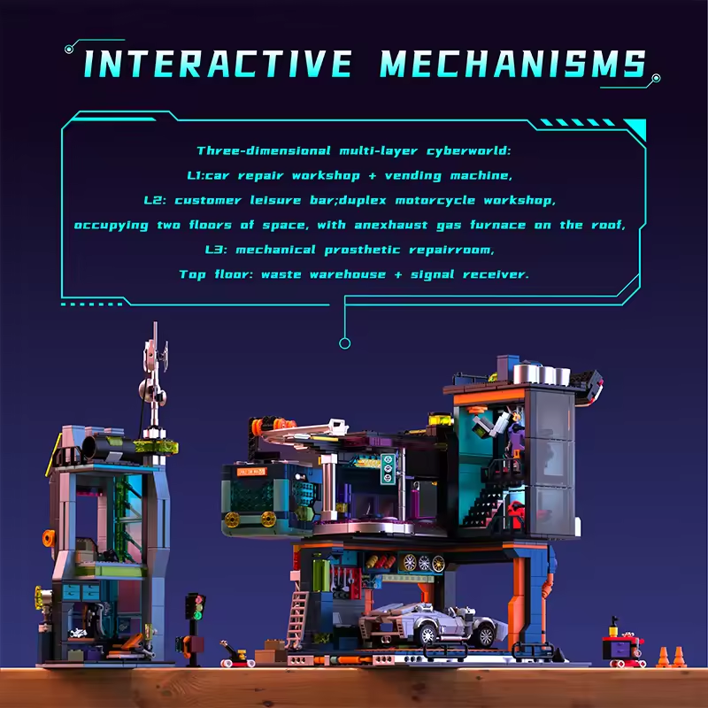 Cyberpunk Building Set City Street View Architecture Modular Building Block Asse
