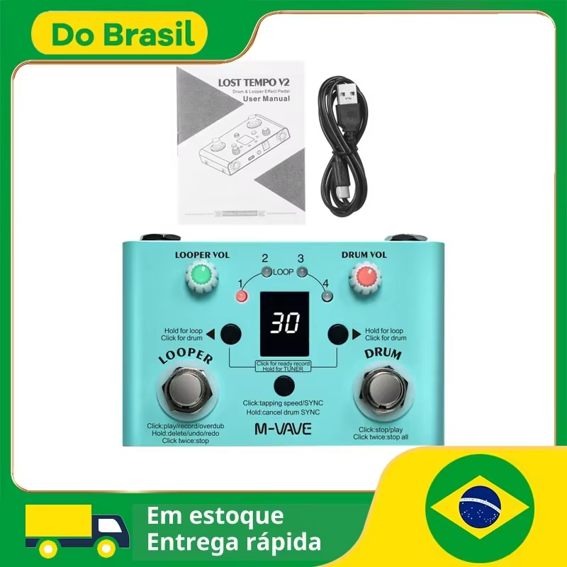 M-vave Lost Tempo V2 Drum Machines & Looper Pedal Uilt-in 30 Drums 11 Min Recodi